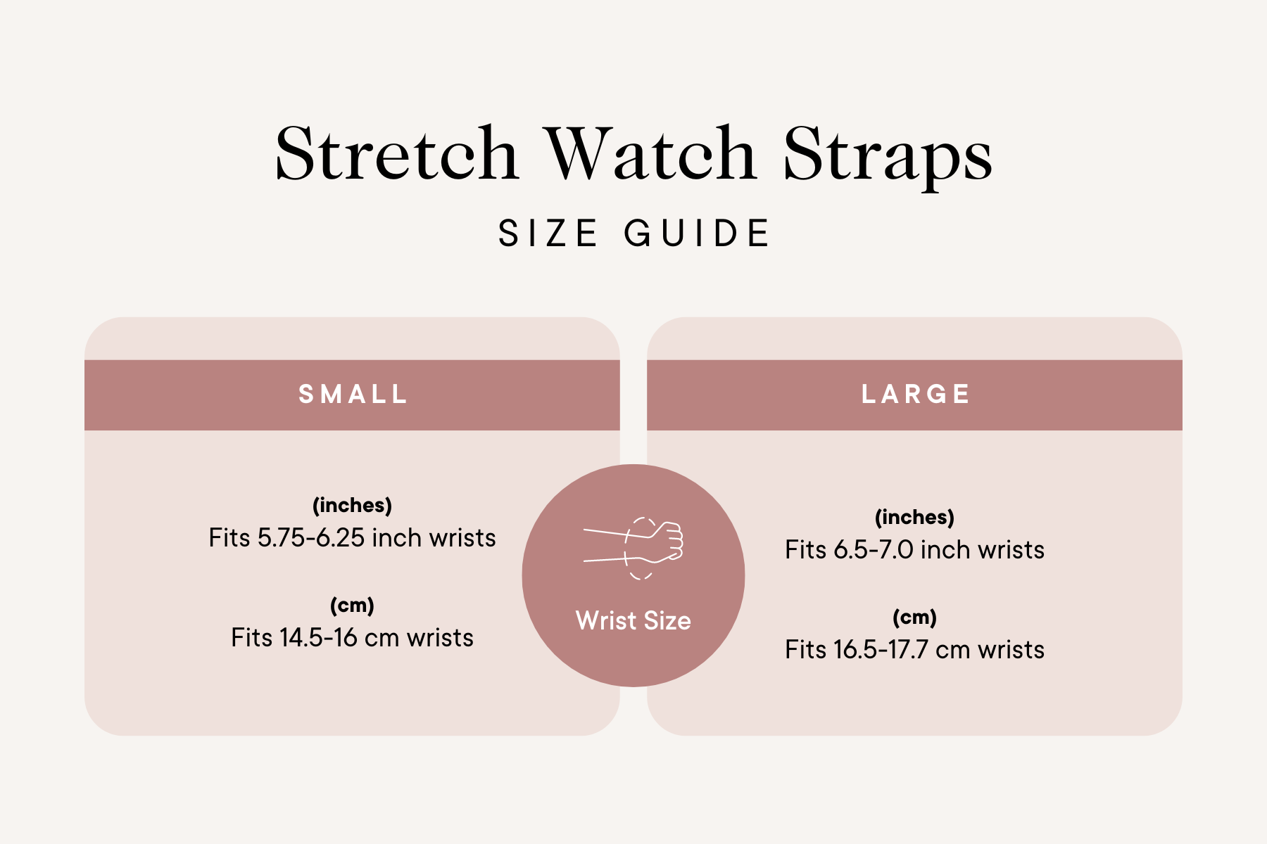 En utilisant la mesure du poignet que vous venez de prendre, consultez le tableau pour votre type de bracelet préféré afin de voir quelle taille de bracelet correspond à la taille de votre poignet.