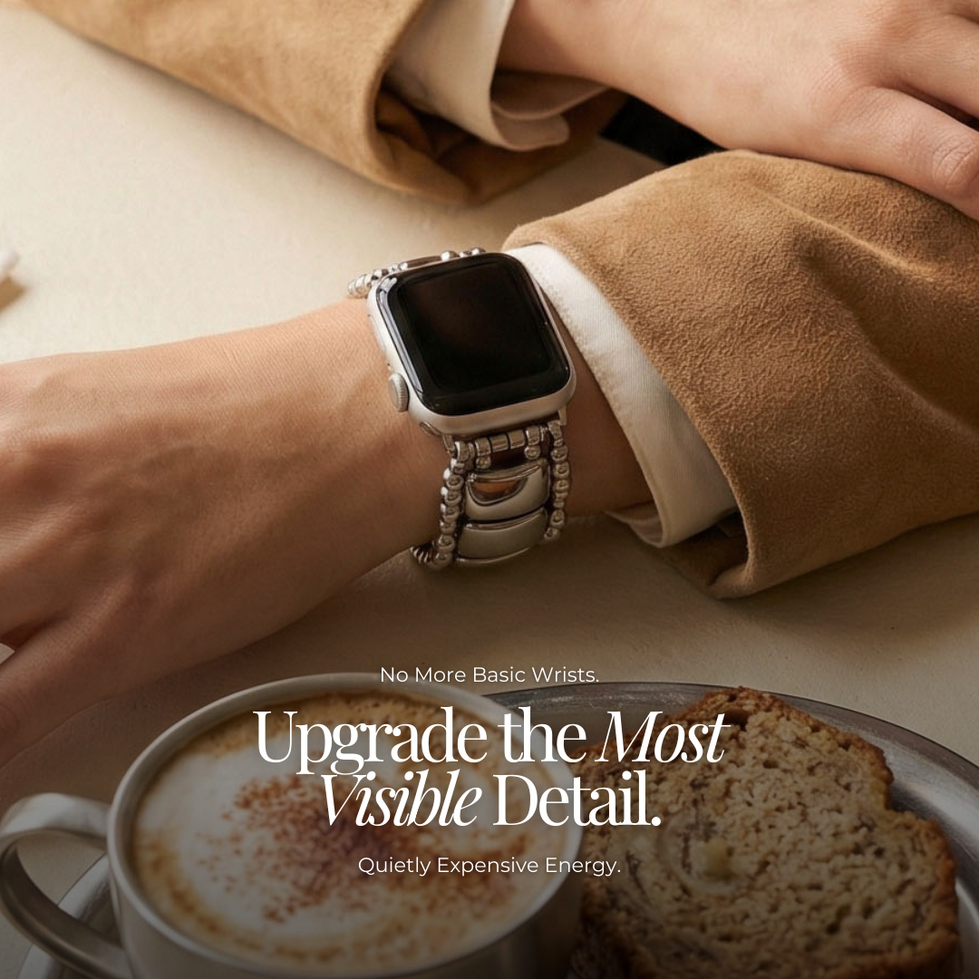 Votre Apple Watch est au premier plan — au dîner, en réunion, sur chaque photo — pourtant la plupart des gens la laissent telle quelle. Ce bracelet en caoutchouc ne va ni avec le veston, ni avec les bagues, ni avec l’effort fourni.